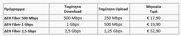 Με τρεις ξεκάθαρες επιλογές το ΔΕΗ Fiber προσφέρει την καλύτερη σχέση τιμής/απόδοσης στην αγορά.