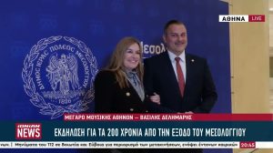Εκδήλωση για τα 200 χρόνια από την έξοδο του Μεσολογγίου στο Μέγαρο Μουσικής Αθηνών22/01/2026ΠολιτισμόςΜεσολόγγι